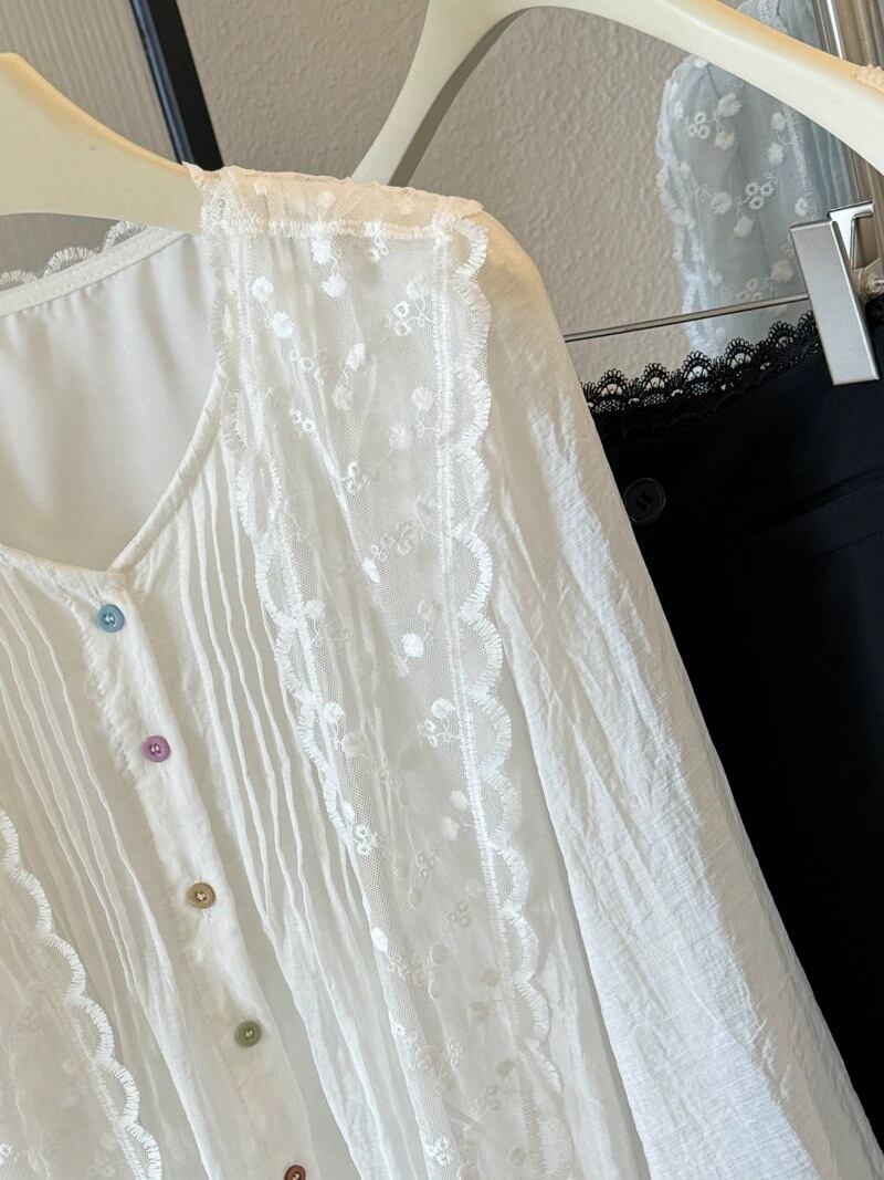 2025春夏新作 トップス 女 レディース 長袖 レース 無地 シャツ ブラウス コート アウター