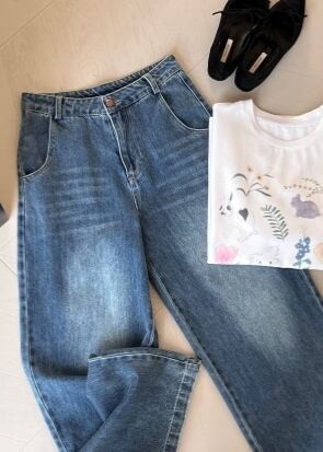u27105 レディース ボトムス 2025年春夏新作 ロング丈 ハイウエスト パンツ デニム ストレート