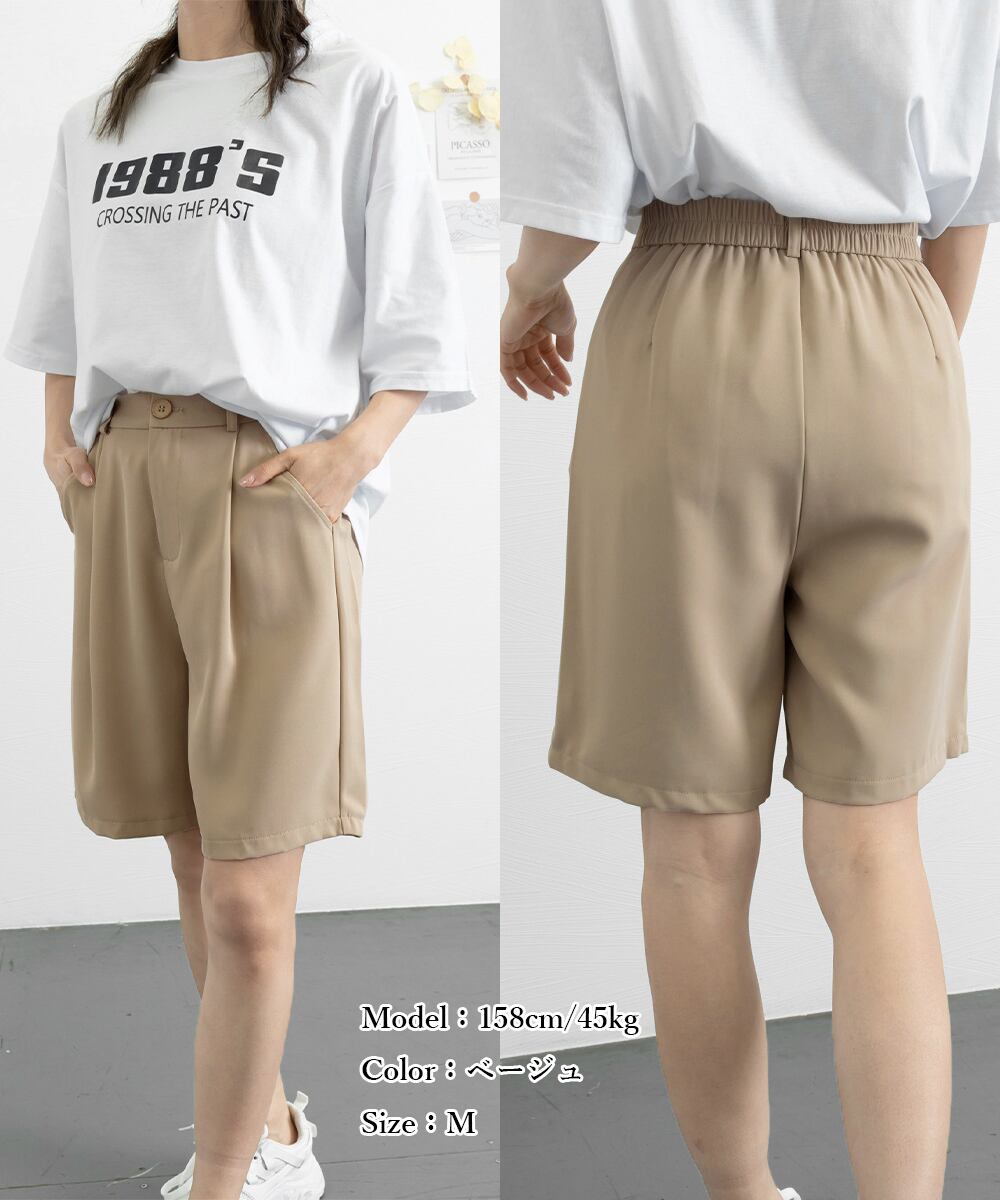 タックショートパンツ ハイウエスト 美脚