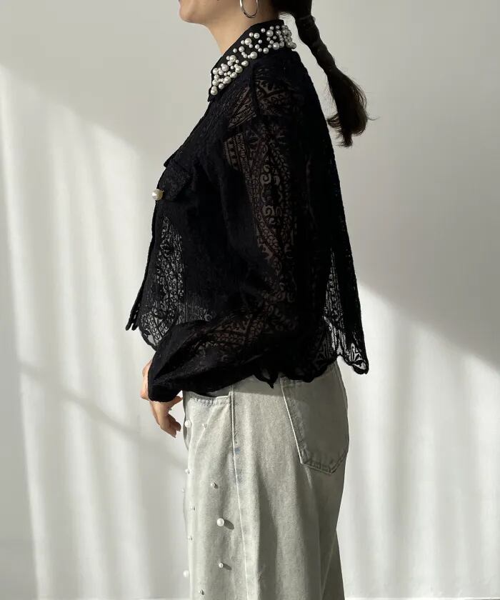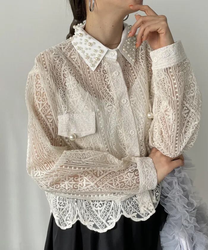 おしゃれレースパール付きシャツトップス レディース 新作
