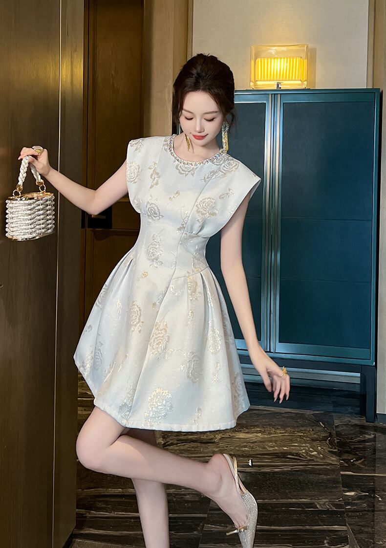 高質おしゃれビーズ付き刺しゅうワンピース レディース 新作