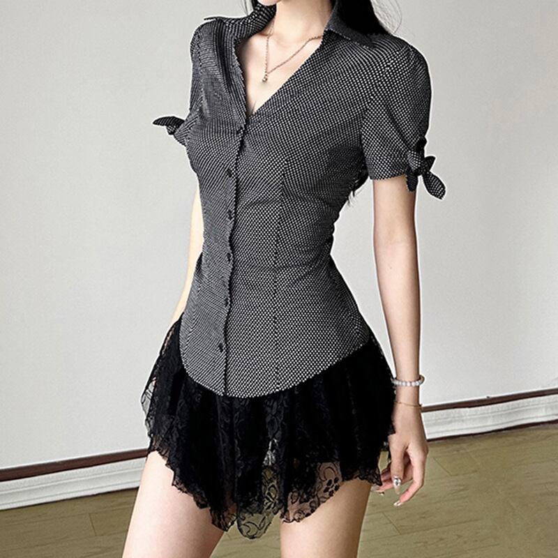 2025春夏新作 トップス 女 レディース 半袖 ドット シャツ ブラウス コート アウター