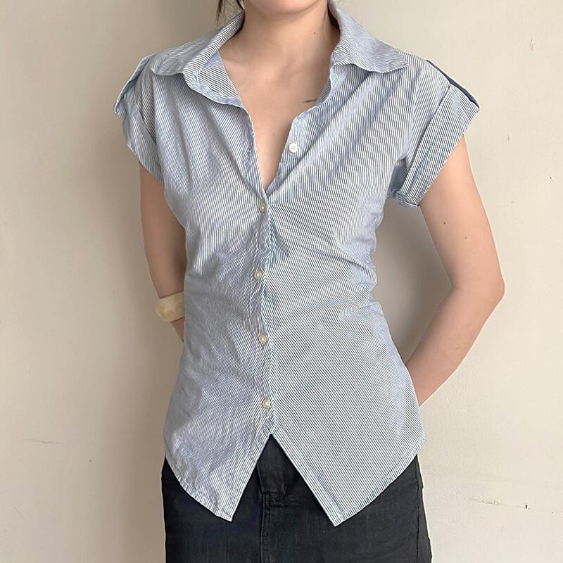 2025春夏新作 トップス 女 レディース 半袖 ボーダー柄 シャツ ブラウス コート アウター