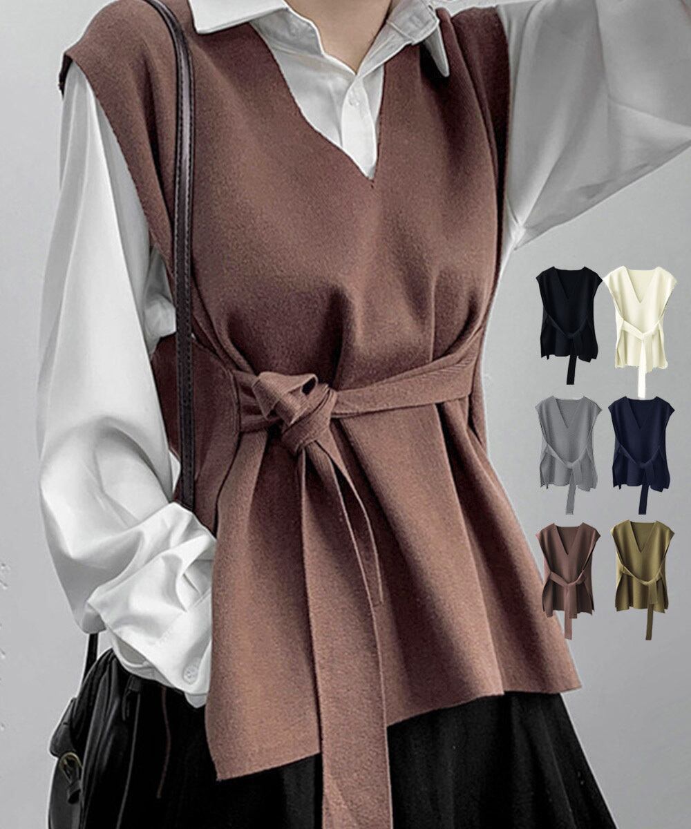 無地 ベストお洒落/秋冬ニットトップス/着やせベスト春秋服