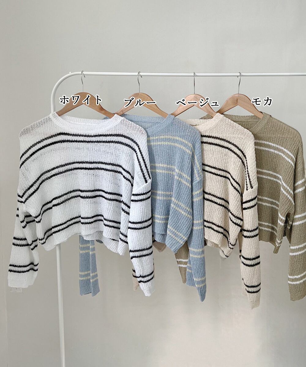 透かし編み ニットトップス ボーダー夏服