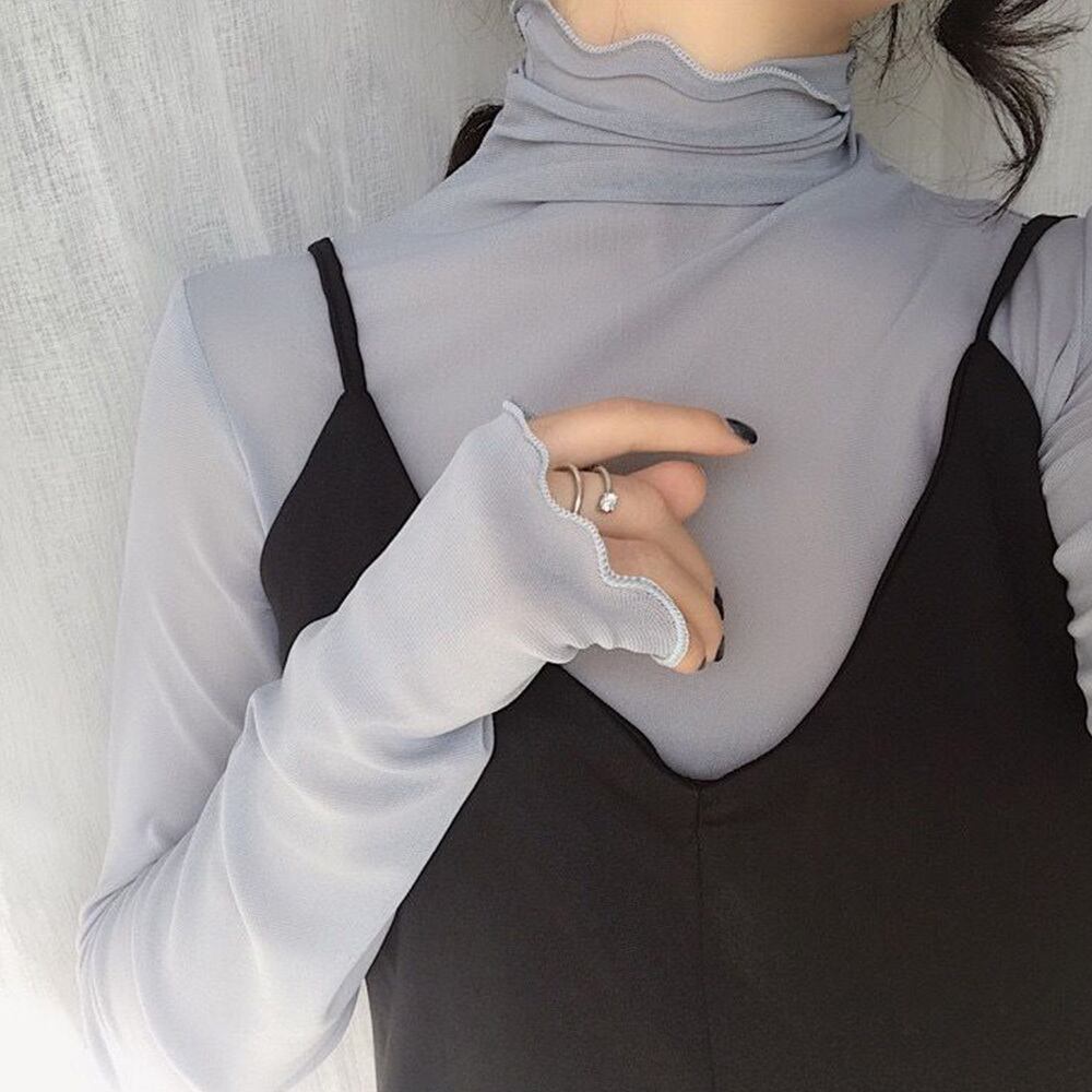大人気 トップス レディース 長袖 シースルー プチハイネック ブラウス 透け感 韓国ファッション ソフトセクシー 春