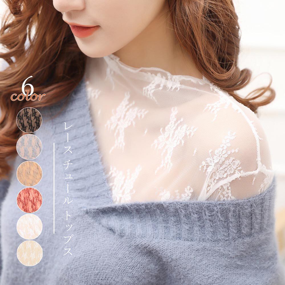 レース チュール トップス レディース ハイネック レースインナー シースルー 長袖 トップス