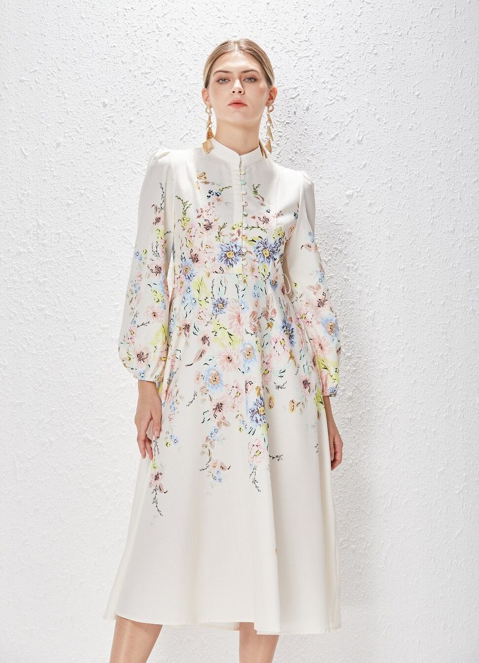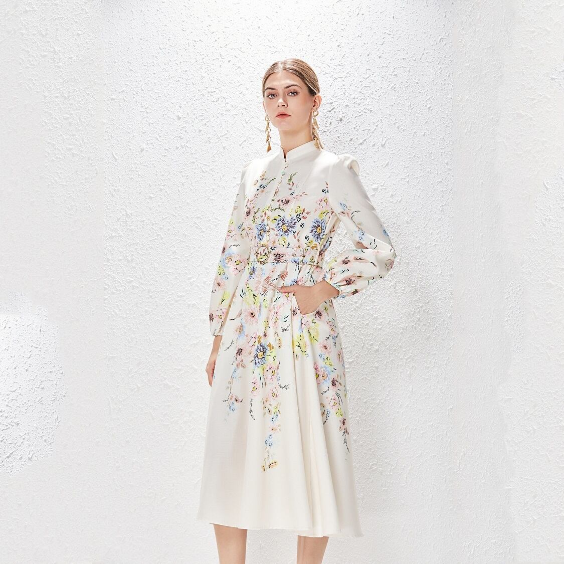 2025新作 M~3L★結婚式 パーティー ベルト付い 上品感 大人かわいい長袖パフスリーブワンピース