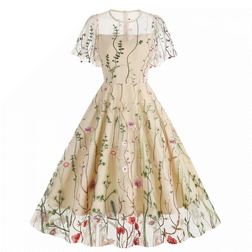 花柄刺繍 ワンピース シースルーワンピース 結婚式 ワンピース パーティードレス 膝丈 ミディアム丈 上品