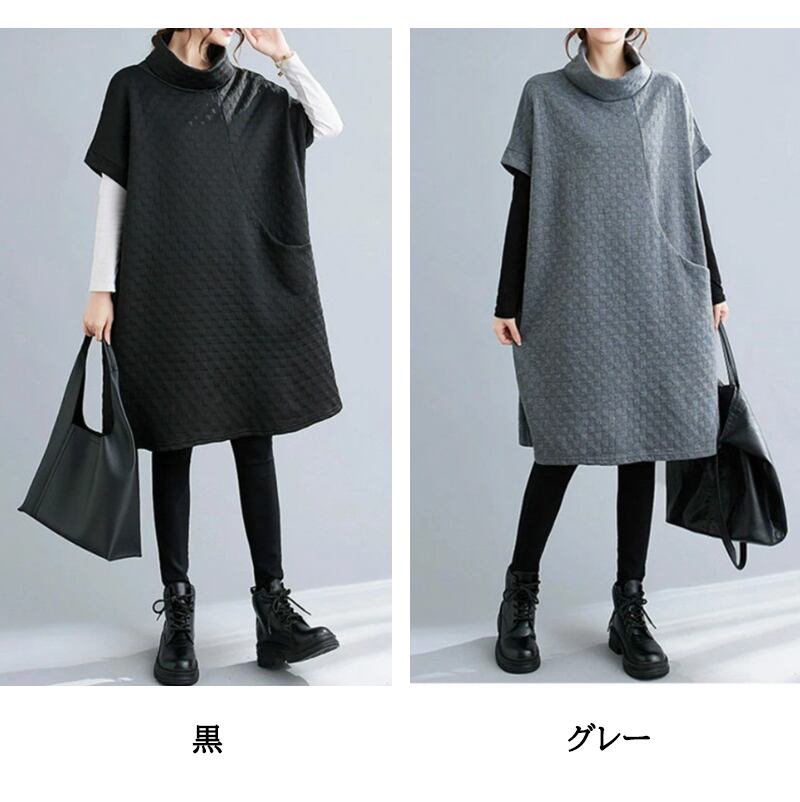 ゆるっと着こなせる ハイネックチュニックワンピース。