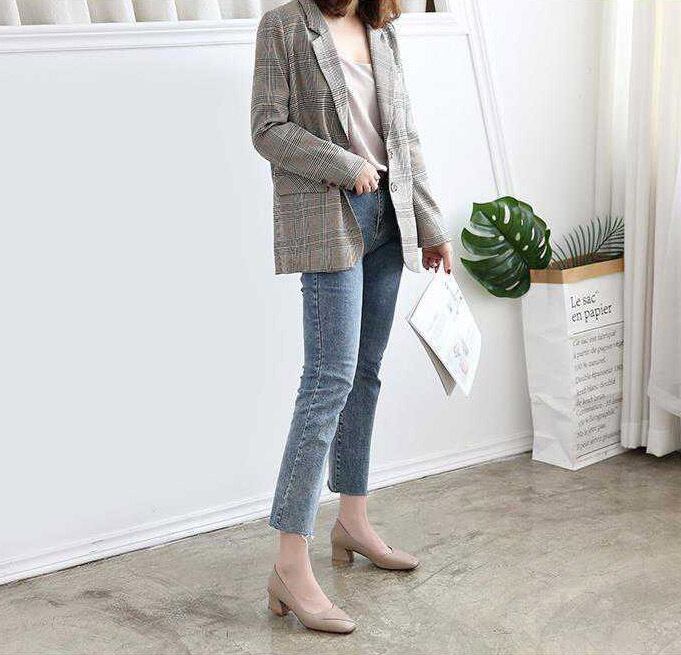 美脚×脚長効果のある4.5cmチャンキーヒールパンプス